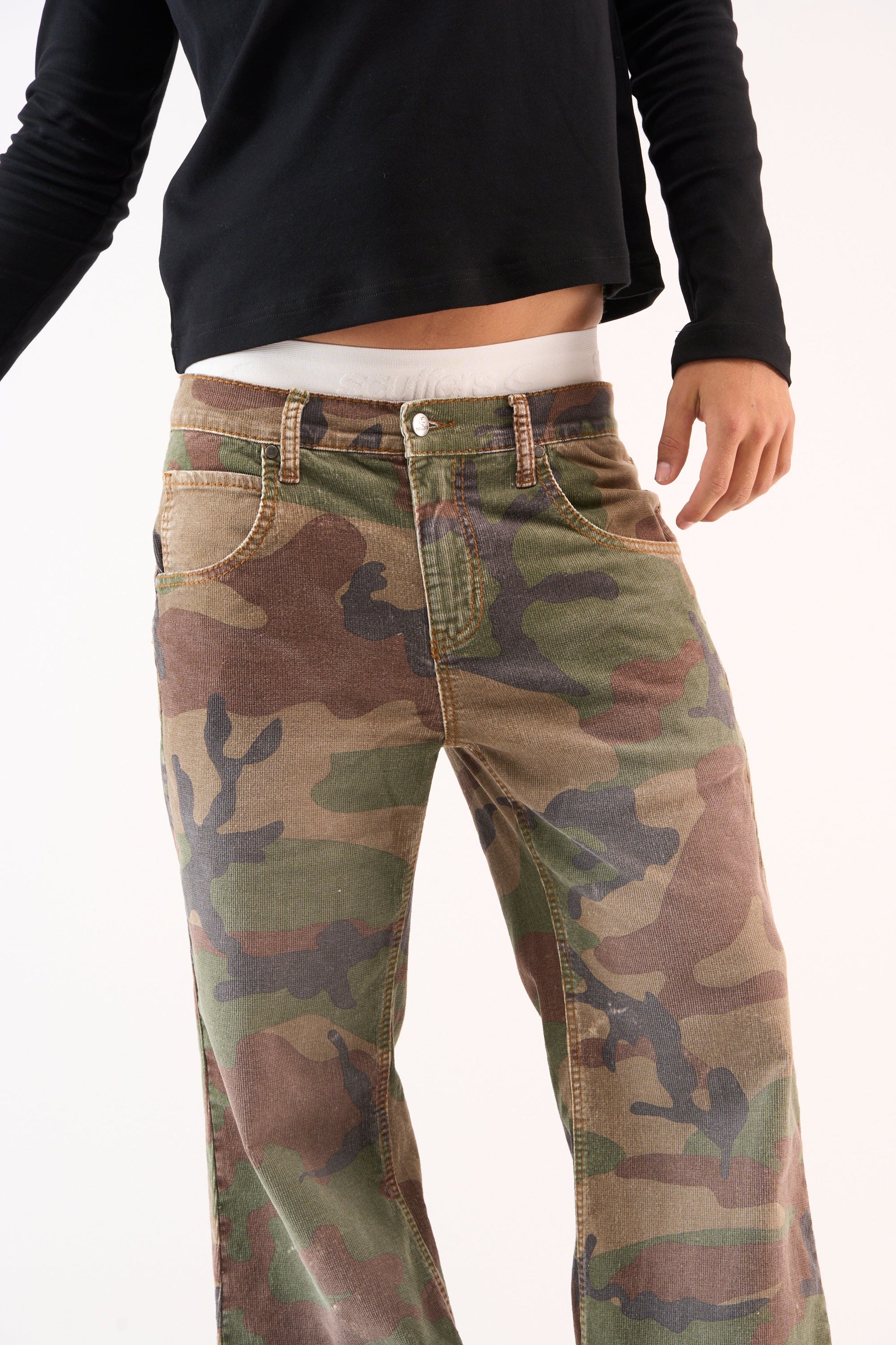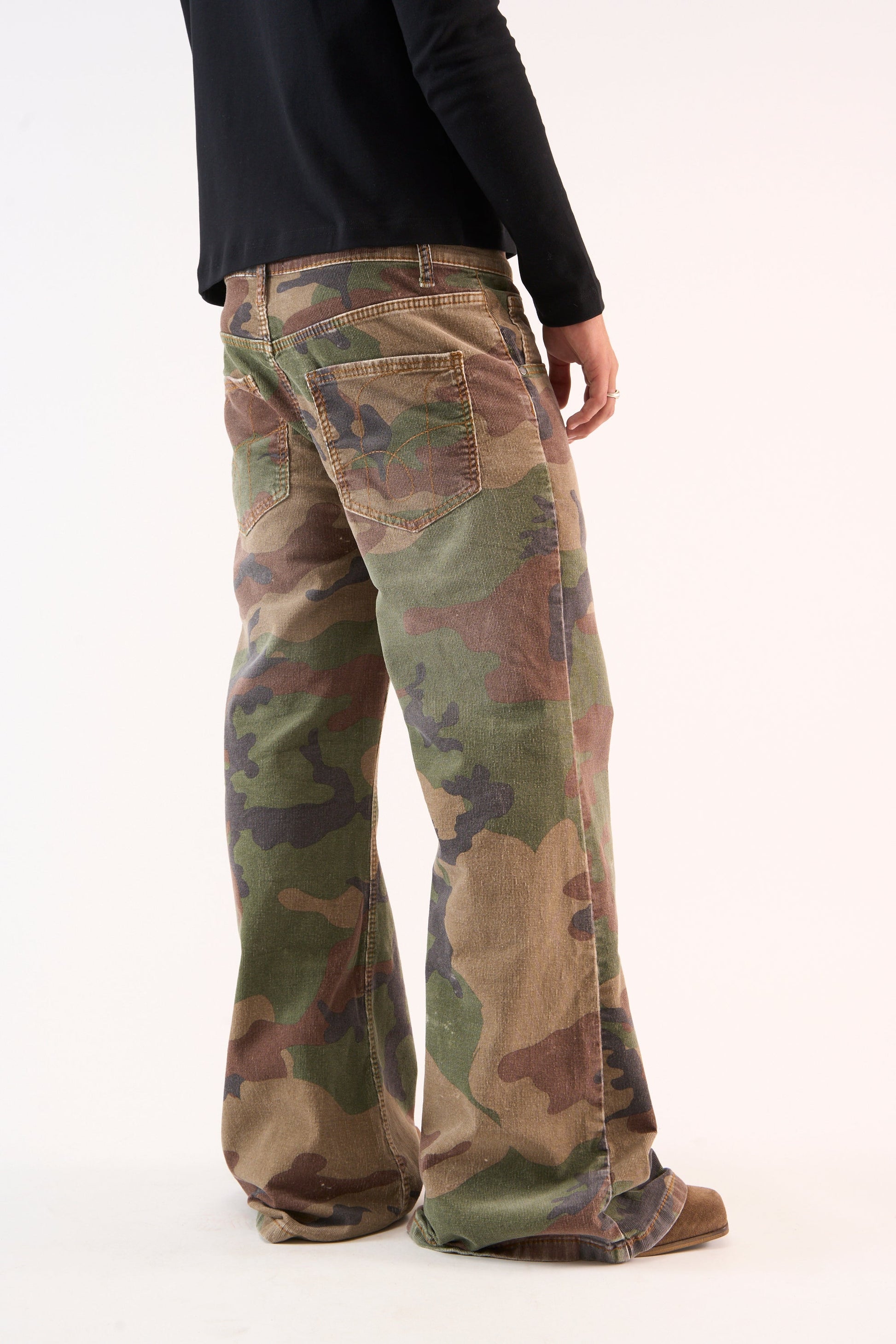 Corduroy Flared Camo Pants
