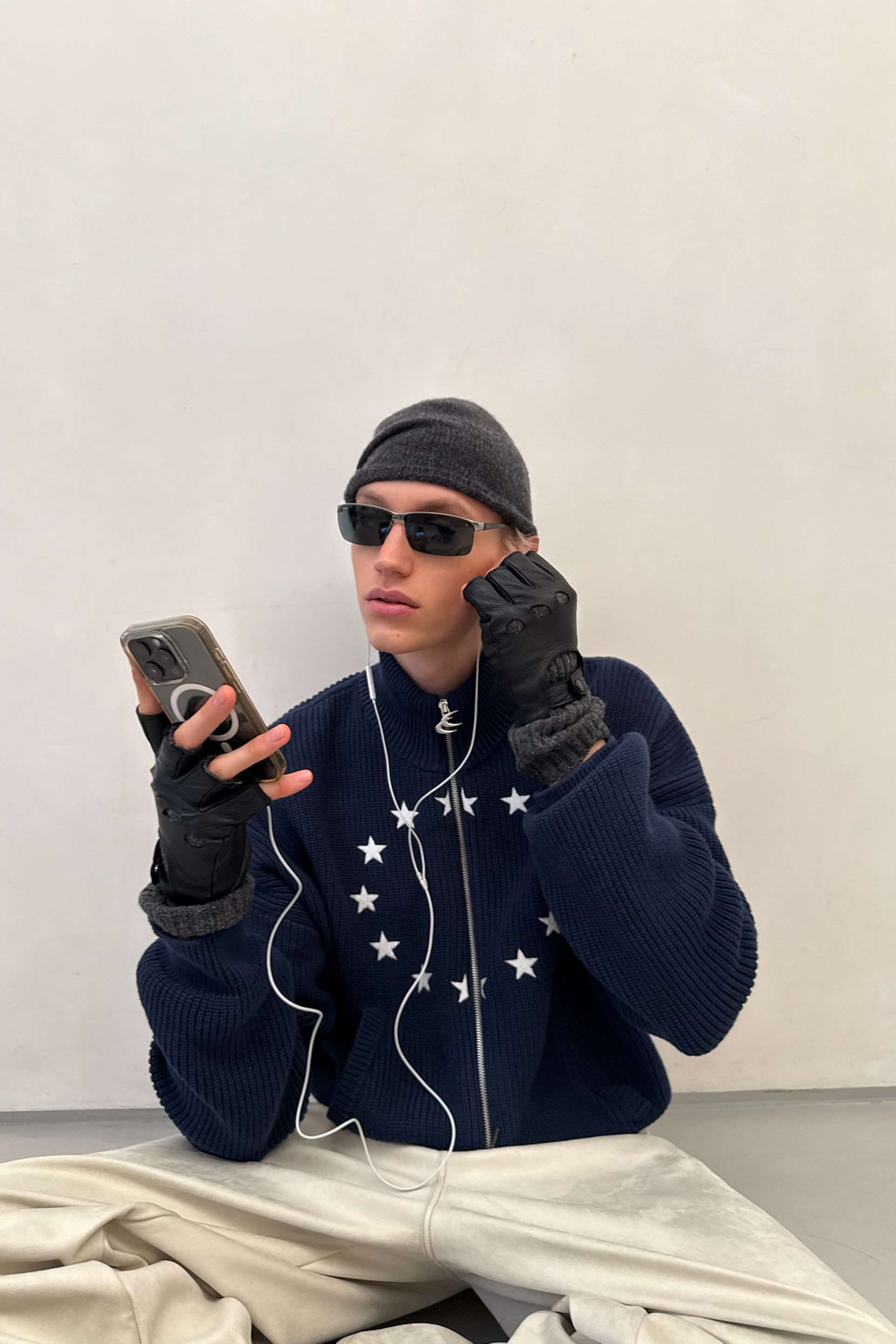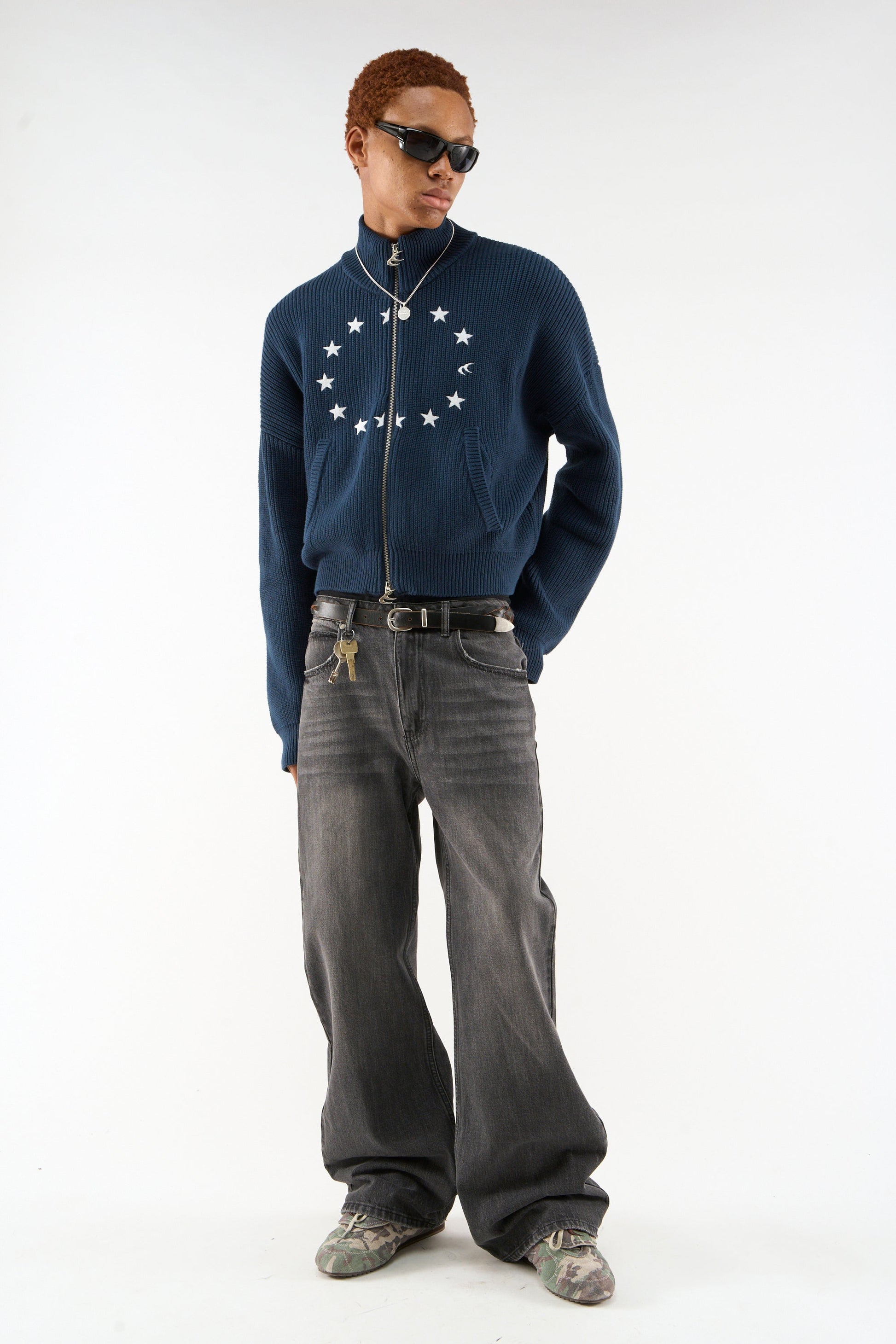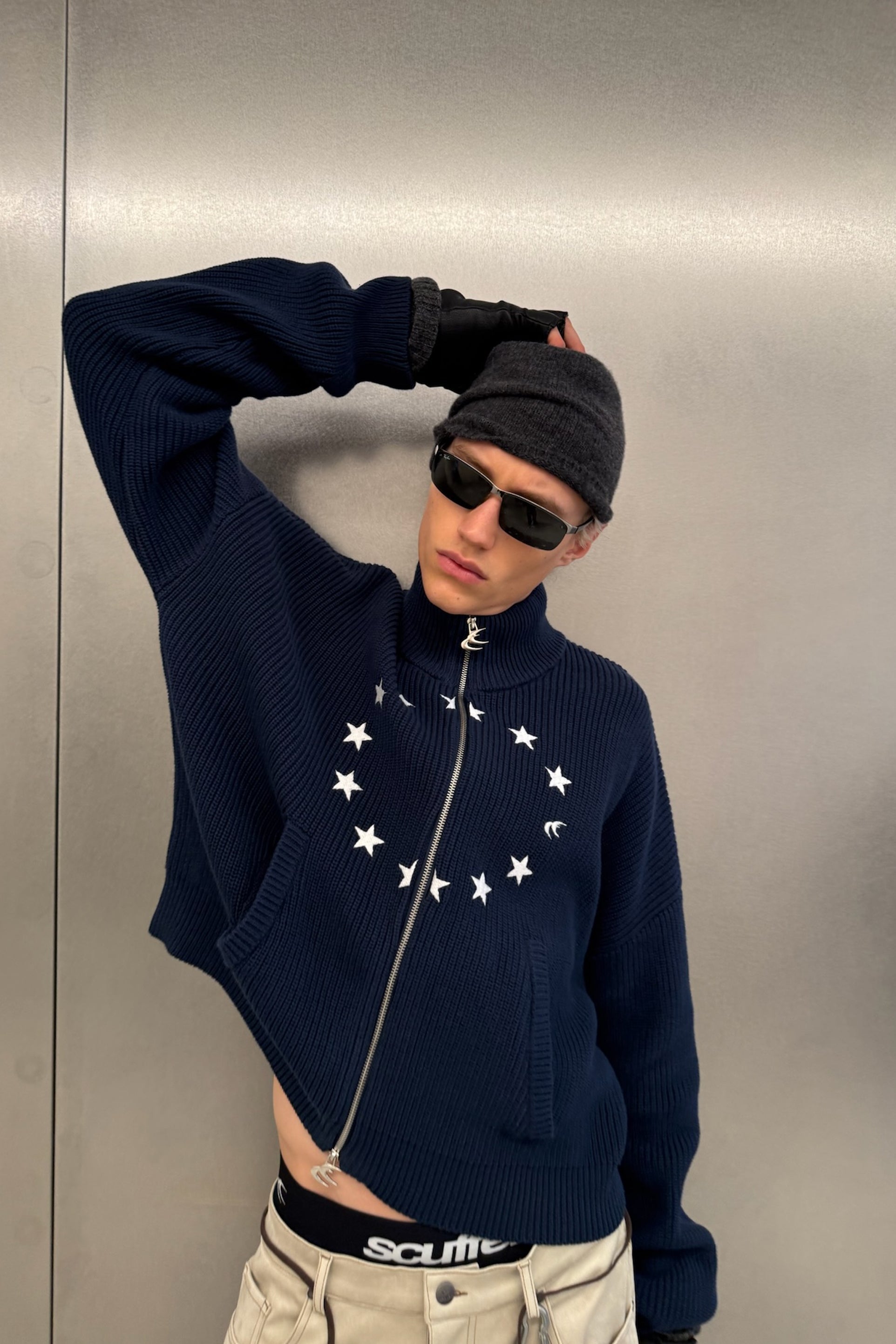 Ea Navy Blue Knit Zipper